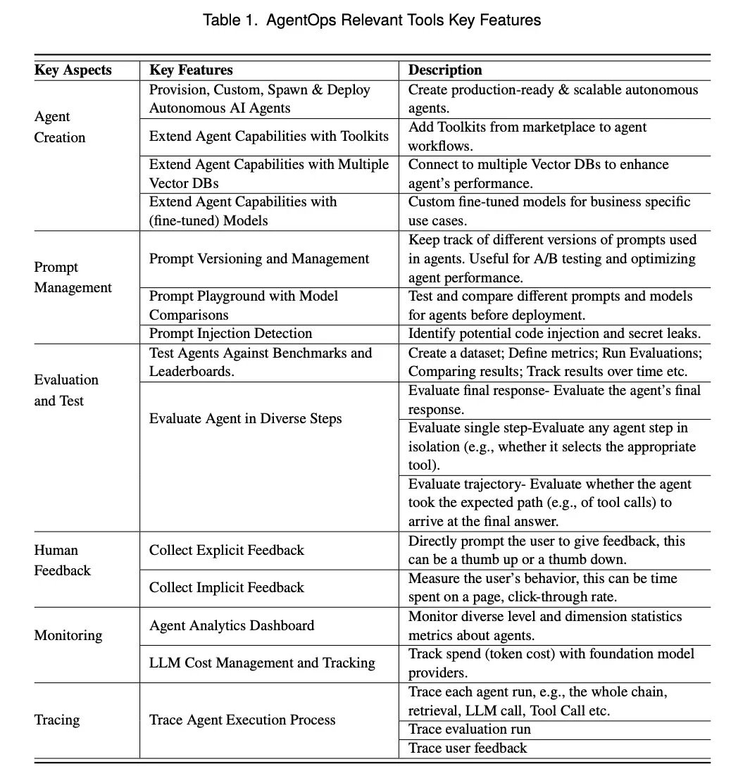 Dong, L., Lu, Q., & Zhu, L. (2024). A Taxonomy of AgentOps for Enabling Observability of Foundation Model based Agents. arXiv preprint arXiv:2411.05285.