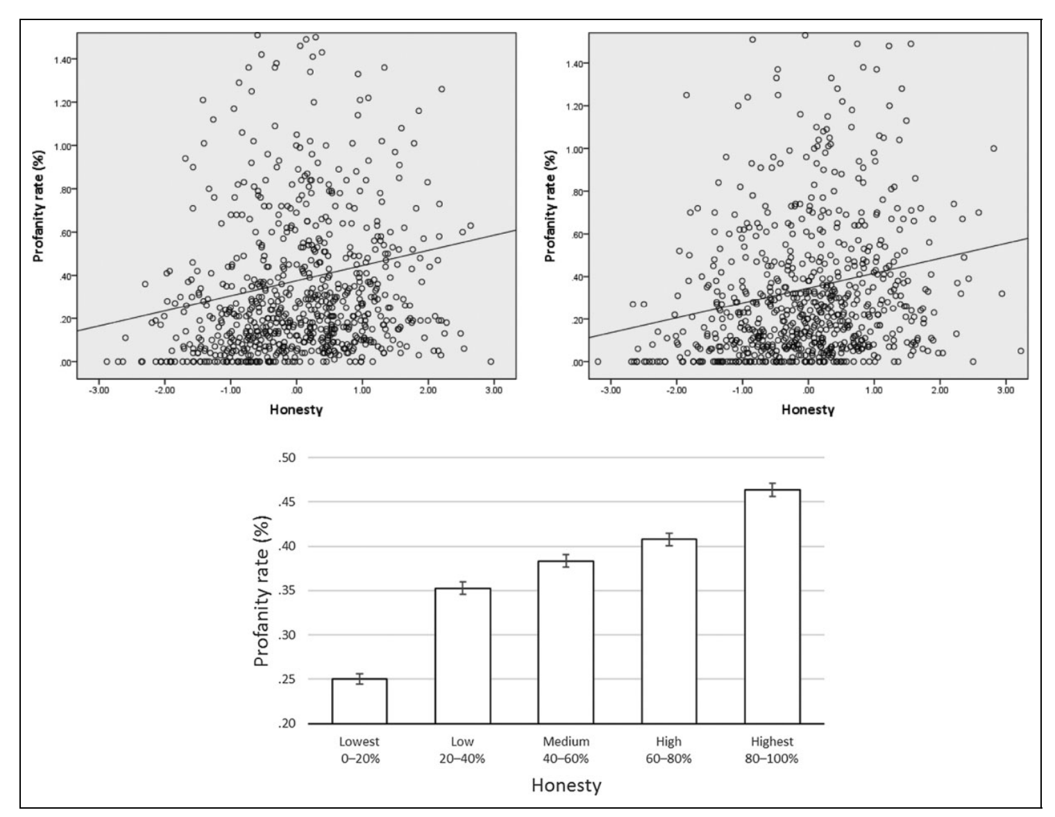 Feldman, G., Lian, H., Kosinski, M., & Stillwell, D. (2017). Frankly, we do give a damn: The relationship between profanity and honesty. Social psychological and personality science, 8(7), 816-826.
